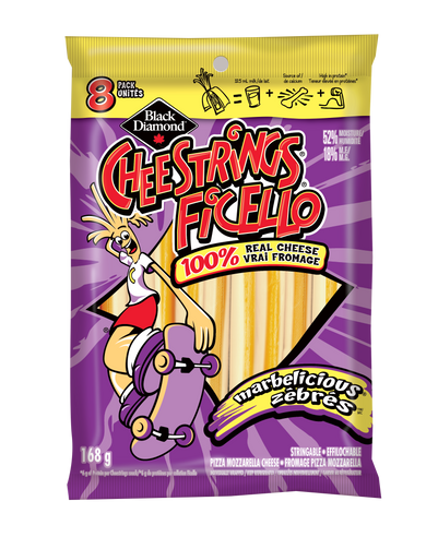 We offer an 8 pack of Black Diamond marble Cheestrings made with 100% Canadian Milk.